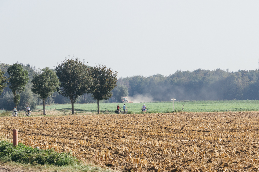 Een geslaagde eerste dag ♥ De volgende dag wilden we een fiets huren, zonder vooraf gereserveerd te hebben. Nu vertelde ik al dat Zuid-Limburg overspoeld werd door de grijze golf, dat hebben we geweten. In Gulpen is het ons op de valreep toch gelukt om een e-mountainbike te huren waar ik in mijn jurkje zo ongeveer met een trappetje op moest klimmen ;P Onder het genot van een bakkie pleur stippelden we een route uit van volgens mij 50km. We fietsen langs mais- en aardappelvelden door de Limburgse heuvels richting Valkenburg.